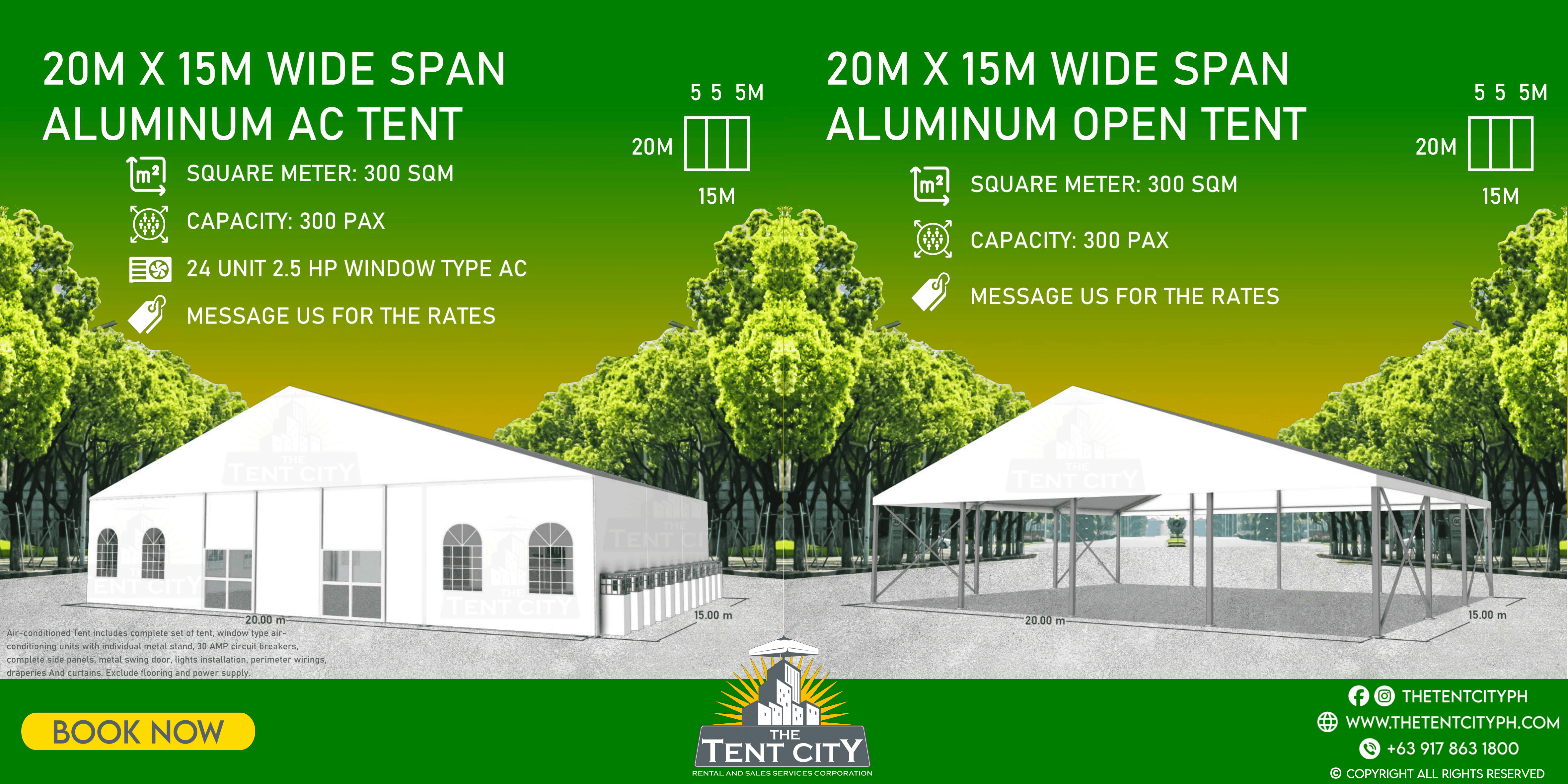| 20M X 15M | 300 SQM | 300 pax |