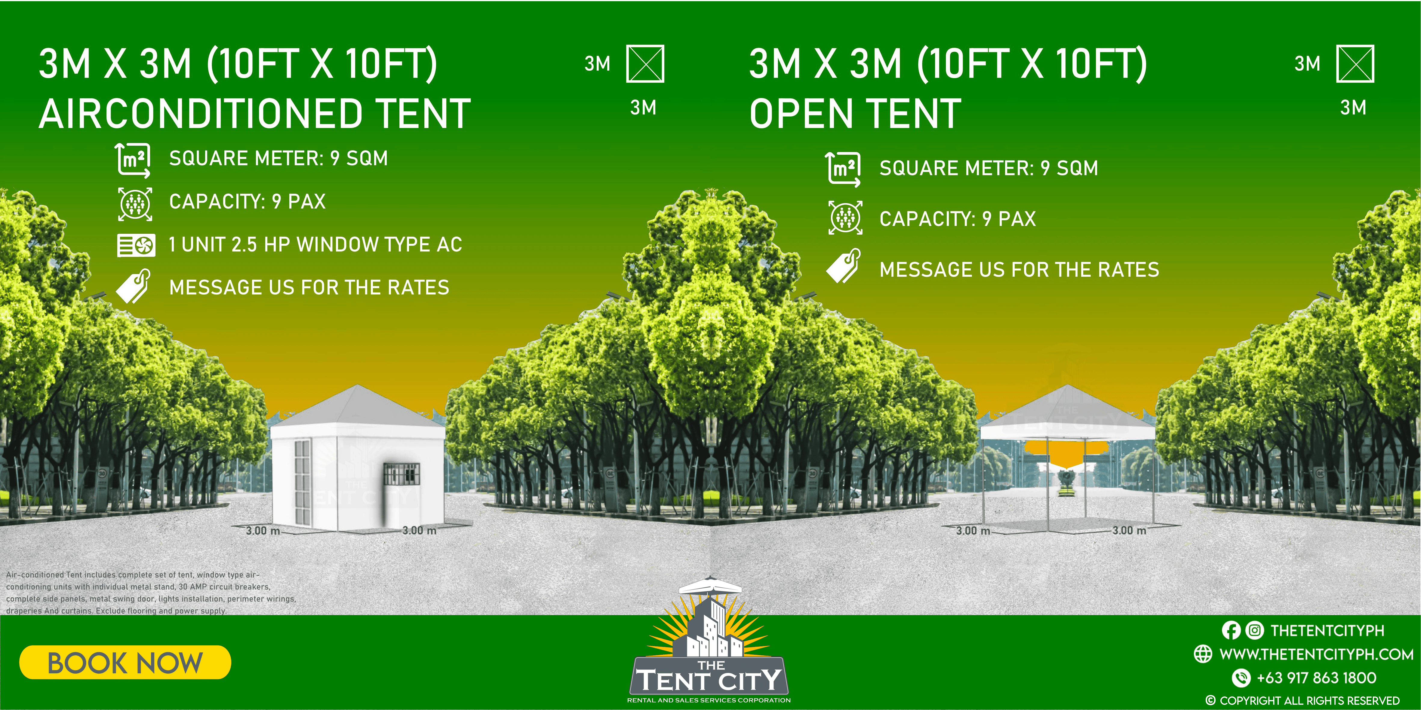 | 3M X 3M (10FT X 10FT) | 9 SQM | 9 pax |