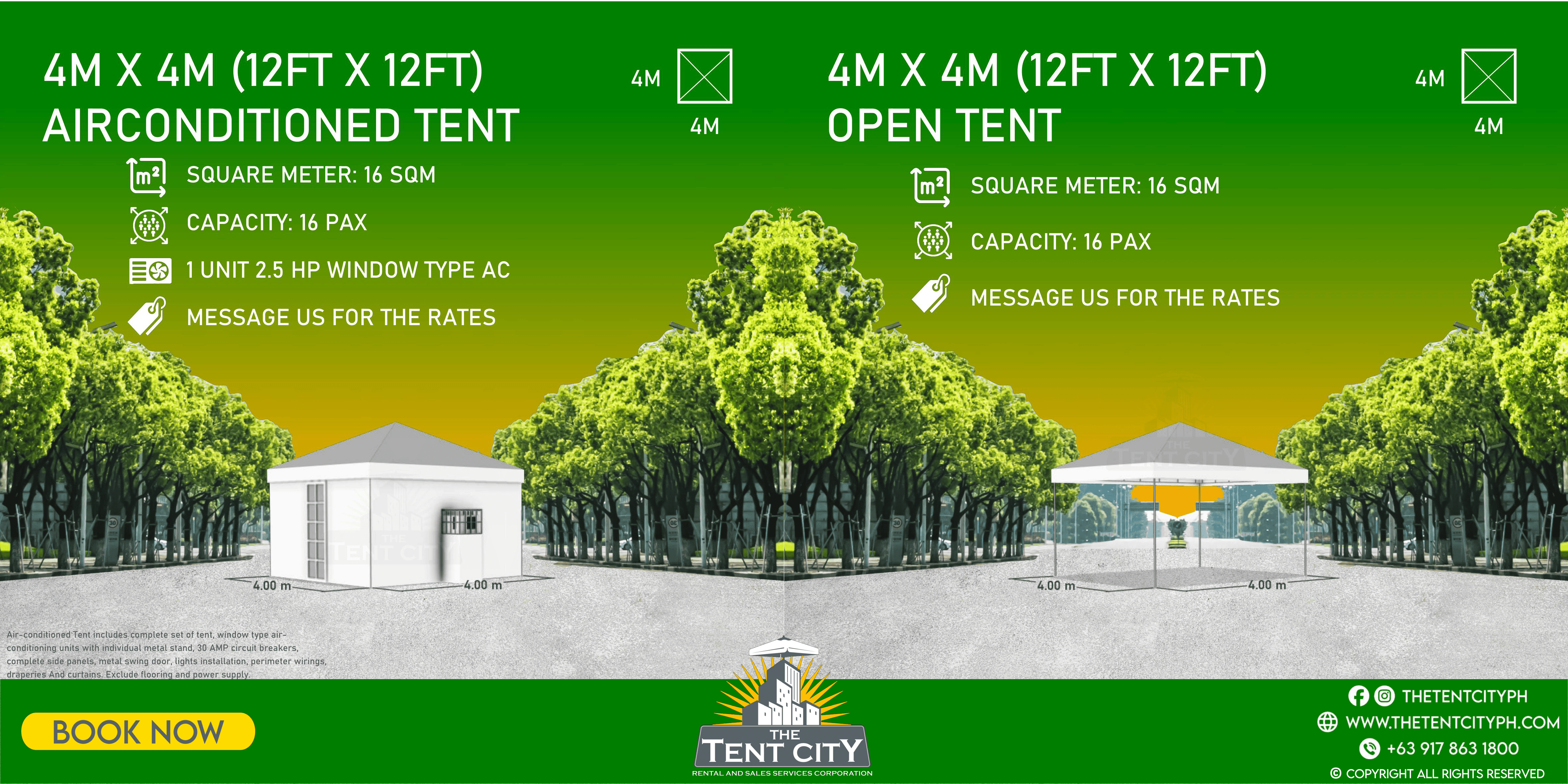 | 4M X 4M (12FT X 12FT) | 16 SQM | 16 pax |