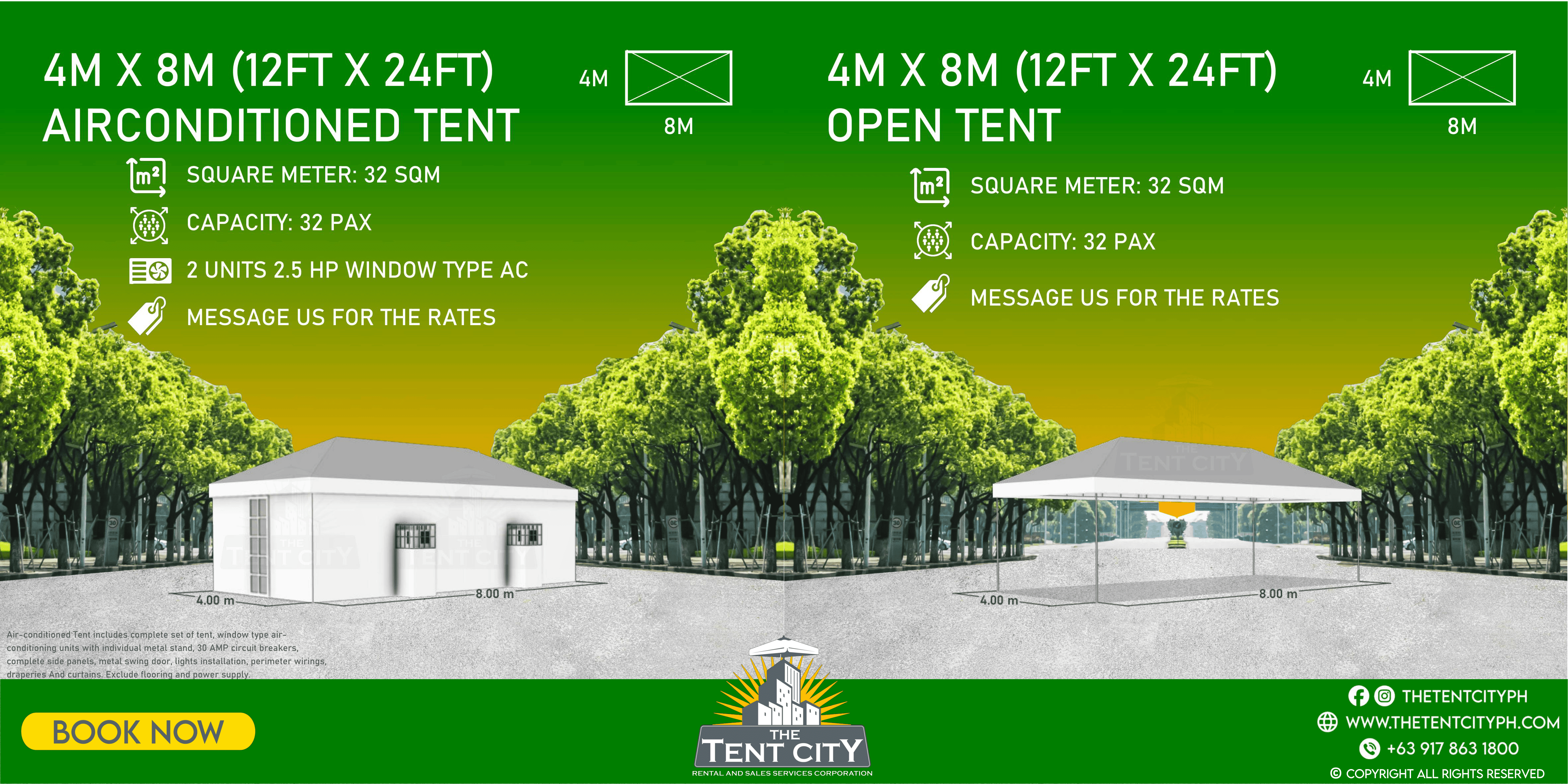 | 4M X 8M (12FT X 24FT) | 32 SQM | 32 pax |