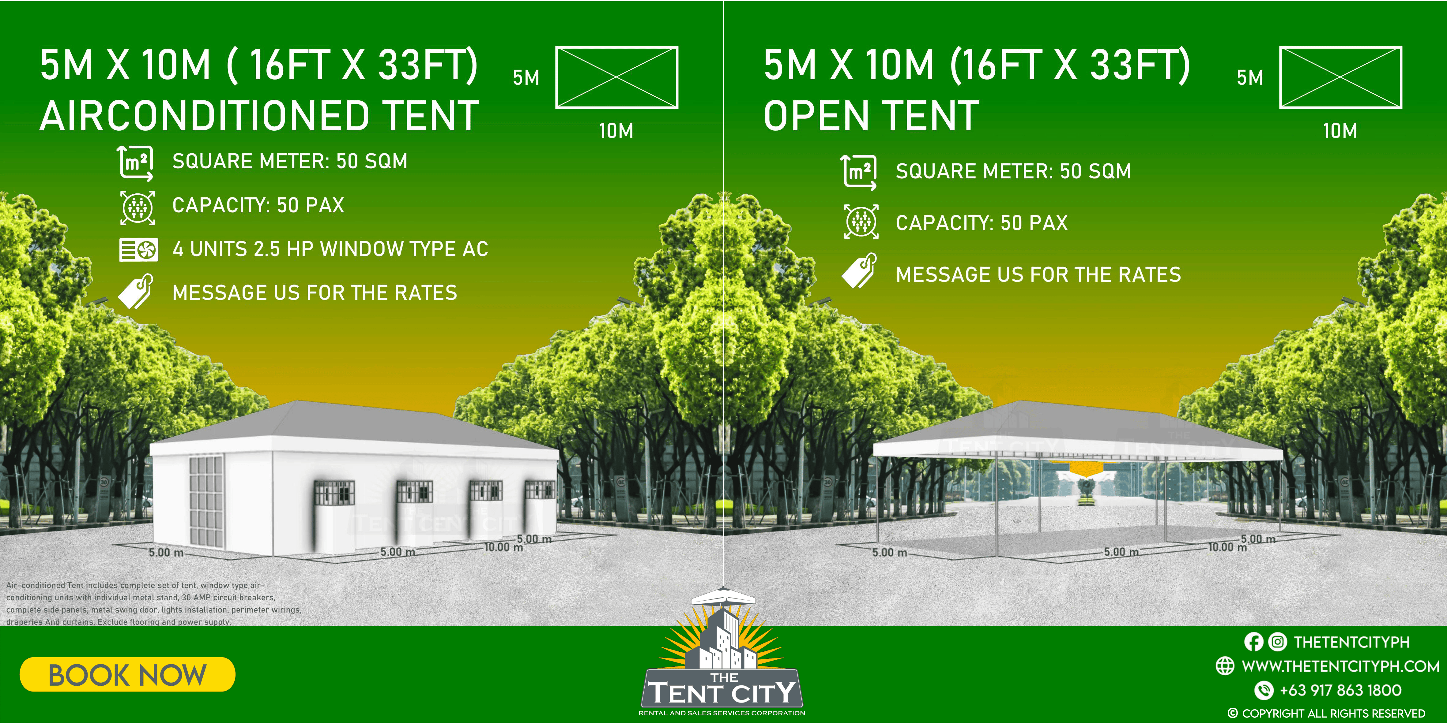 | 5M X 10M (16FT X 33FT) | 50 SQM | 50 pax |