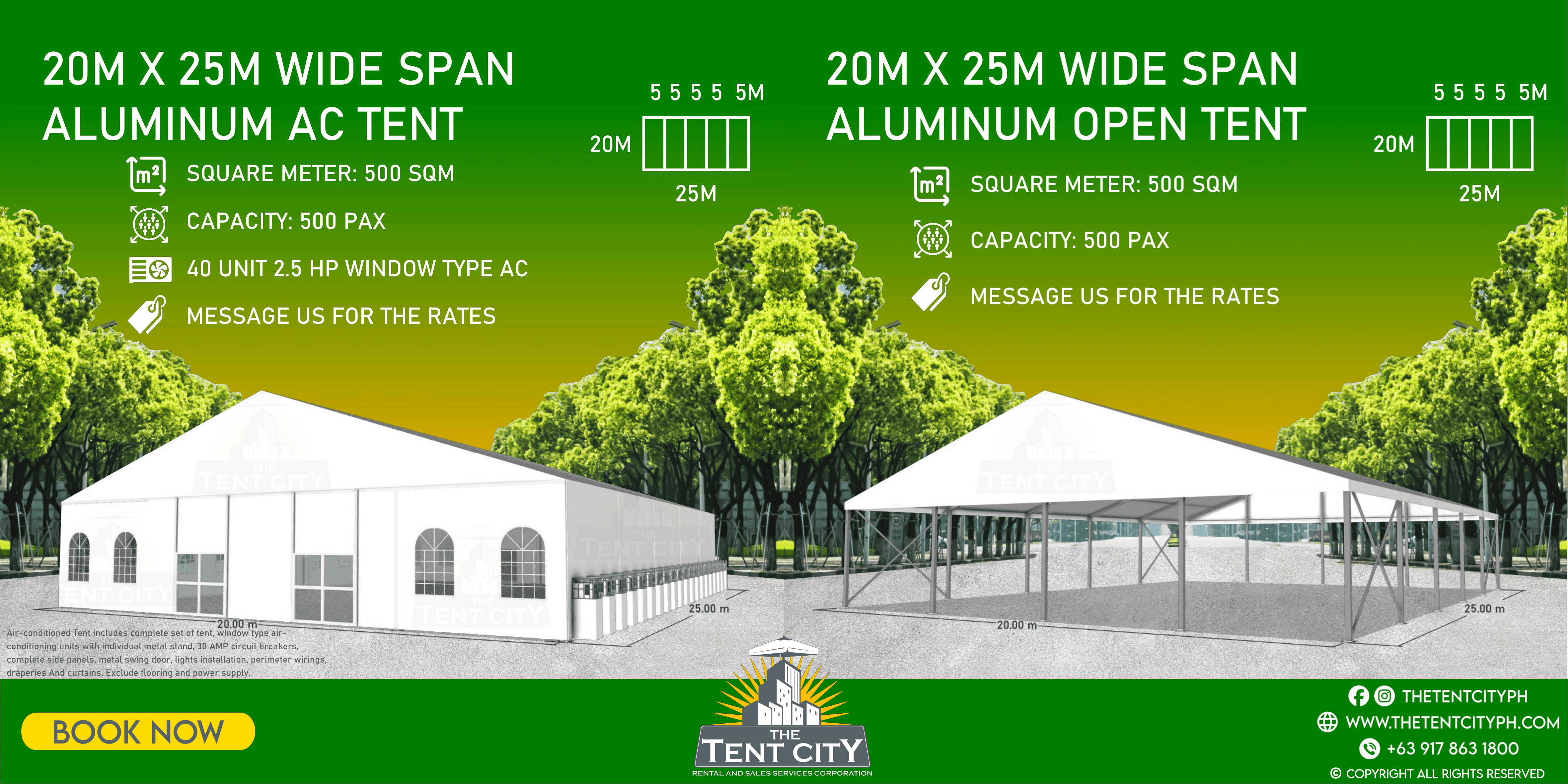 | 20M X 25M | 500 SQM | 500 pax |