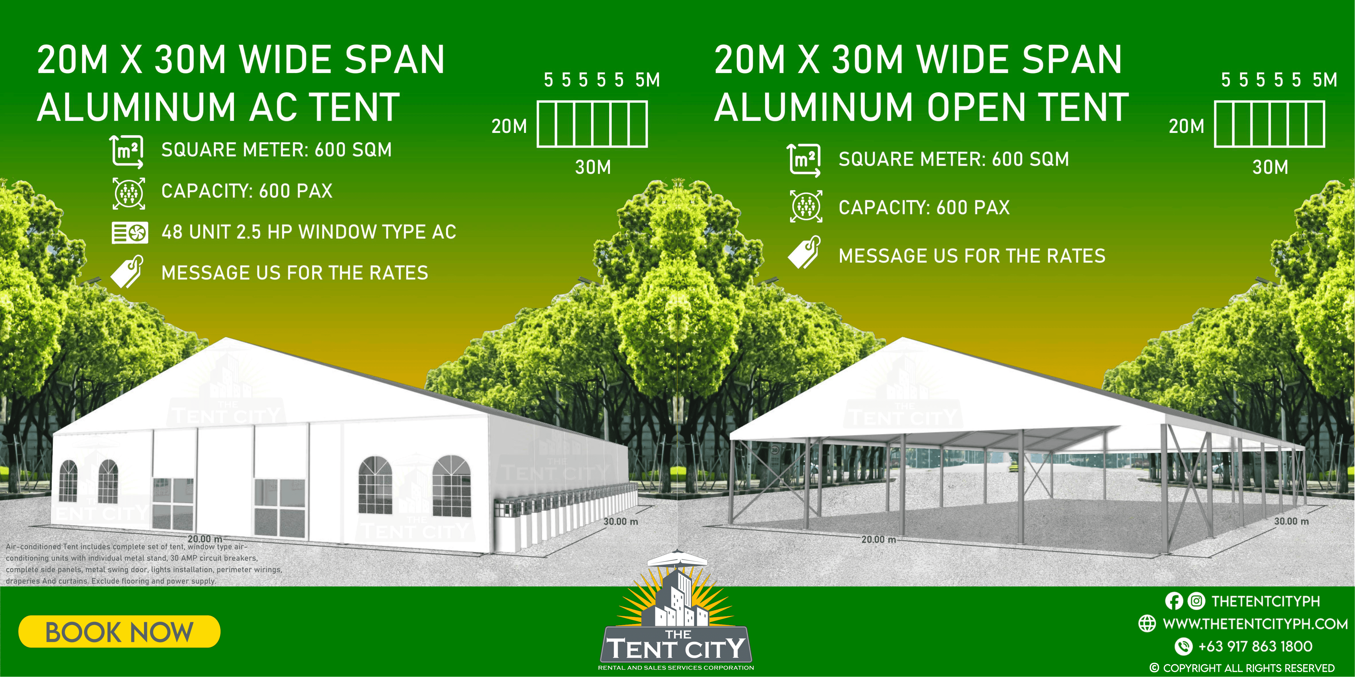 | 20M X 30M | 600 SQM | 600 pax |