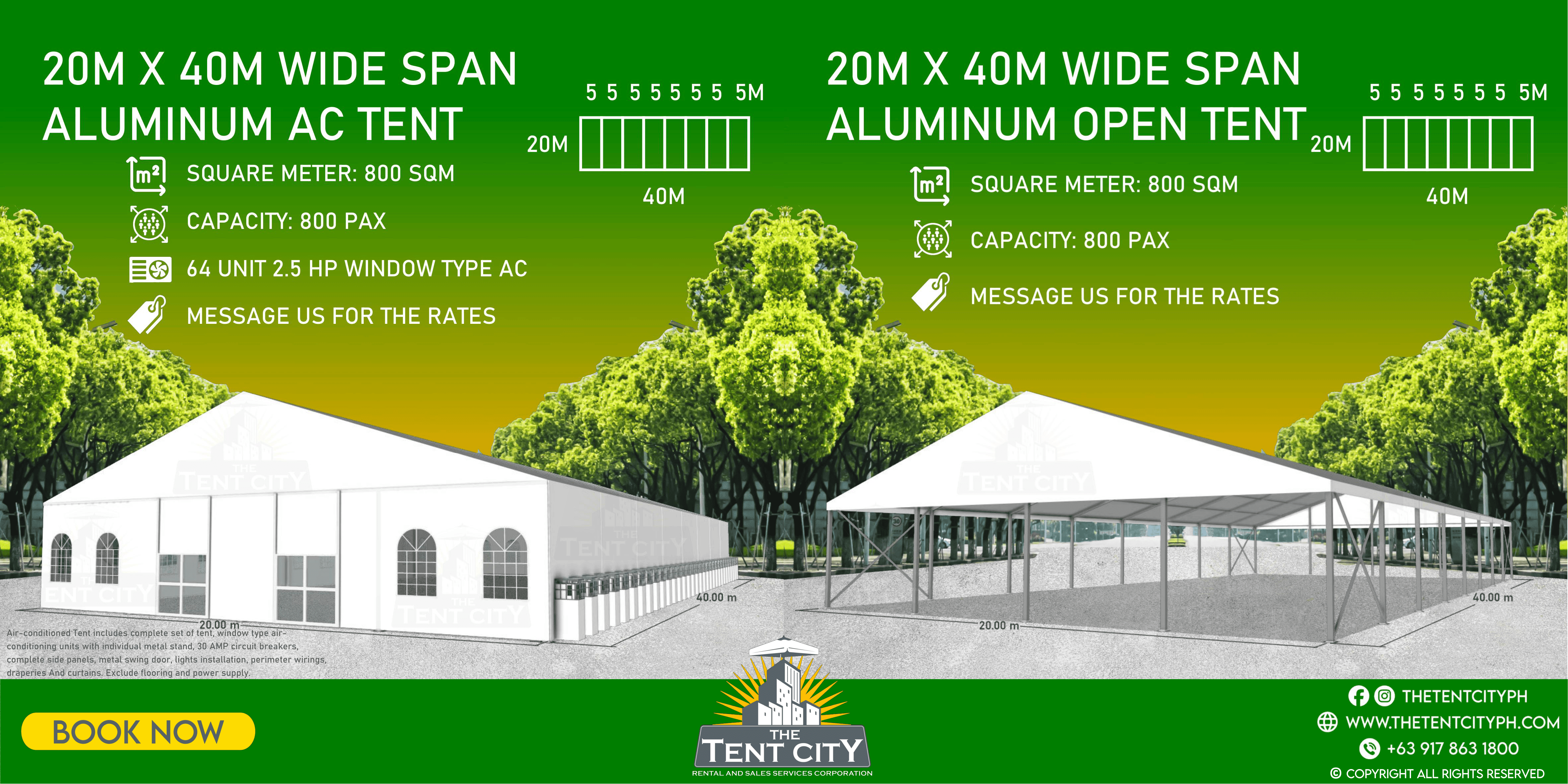 | 20M X 40M | 800 SQM | 800 pax |