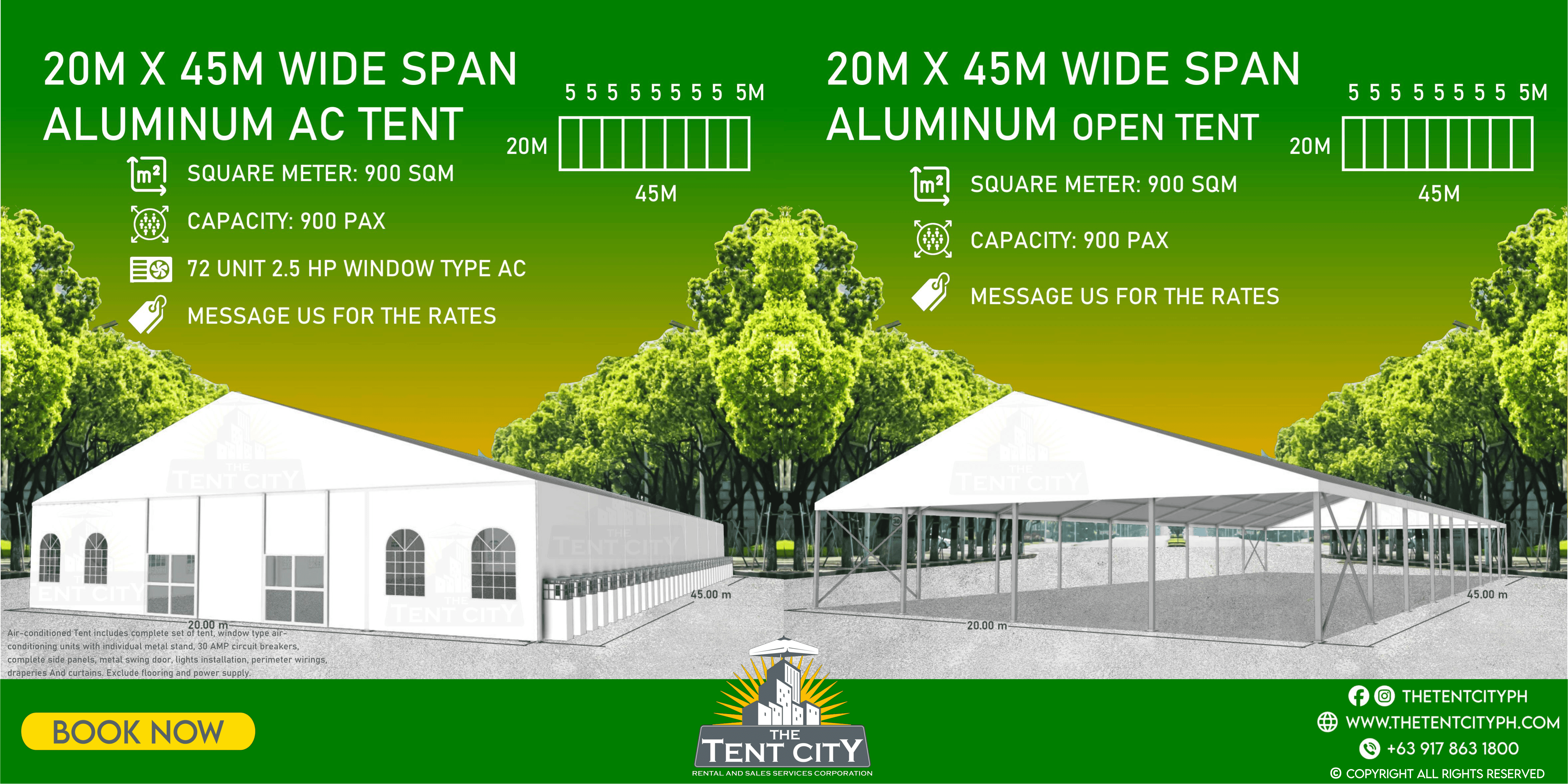 | 20M X 45M | 900 SQM | 900 pax |